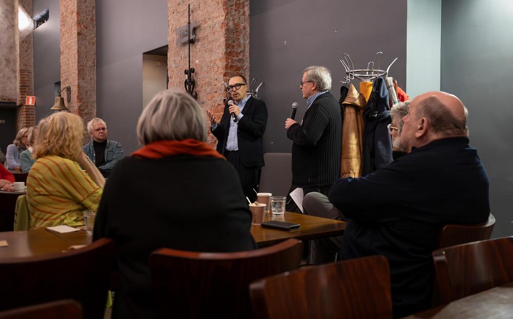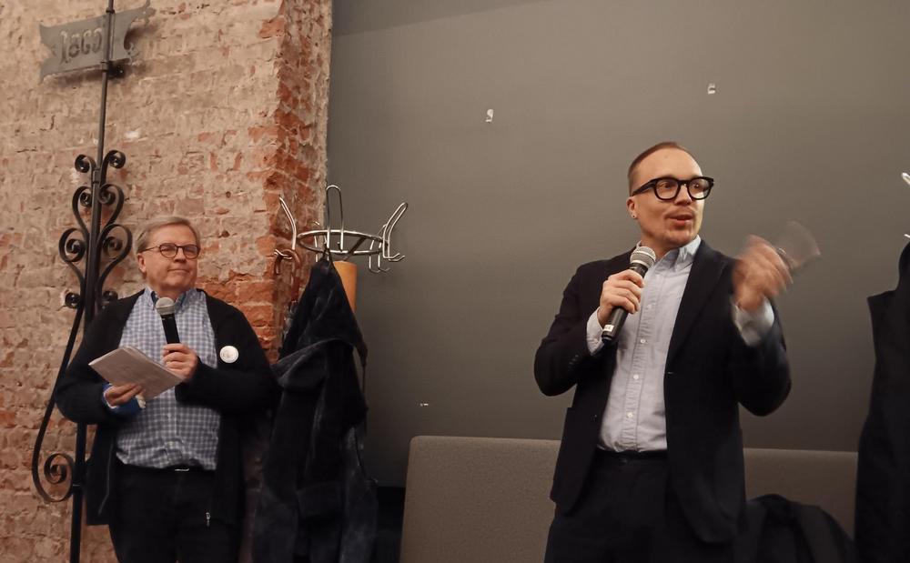 "Uuden Jutun" päätoimittaja Olli Seuri kertoi mediahankkeesta Kiltakellarin Kantapöydässä - keskustelua johdatti tiukkoja kysymyksiä tehden Bengt Östling. Oli ilo kuunnella innostavista suunnitelmista näinä mediallekin synkkinä aikoina - "Uusi Juttu" jatkaa ja aikoo laajentaakin toimintaansa, ainakin jos käynnissä oleva kampanja uusien tilaajien - joita kutsutaan jäseniksi - hankkimiseksi onnistuu.
