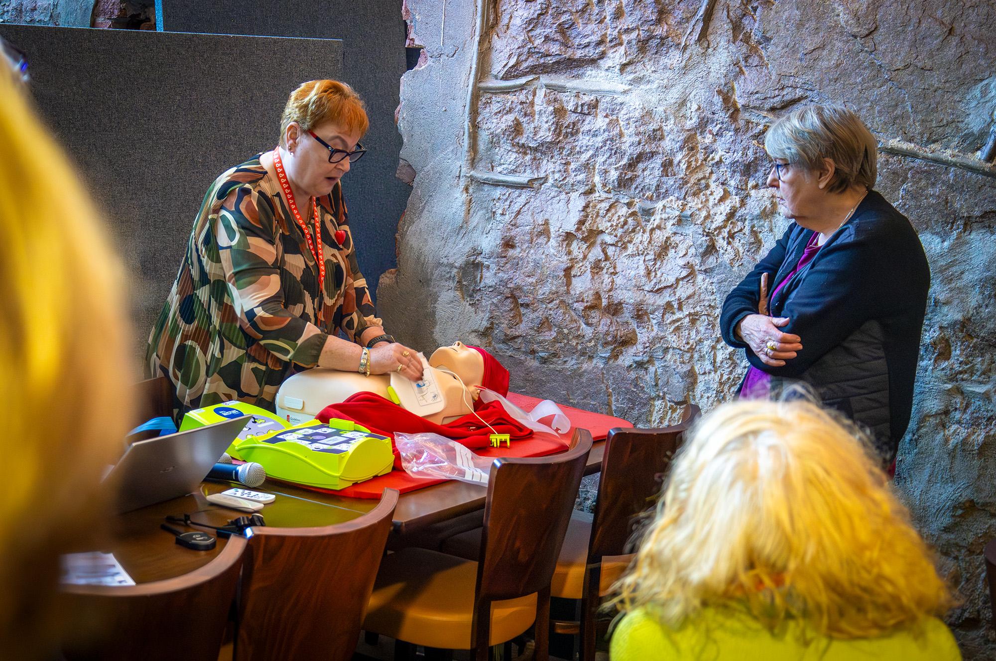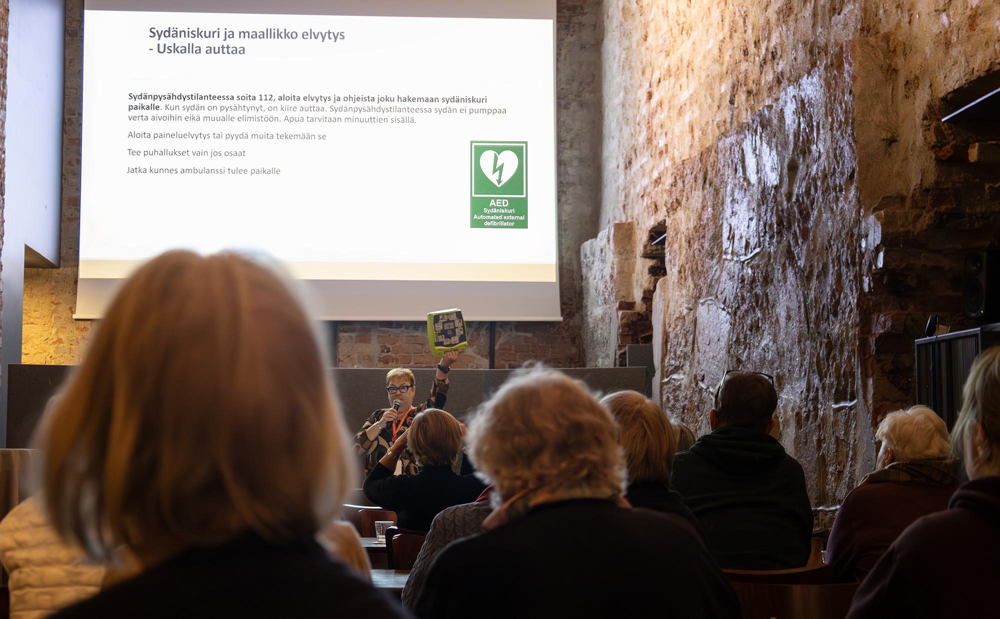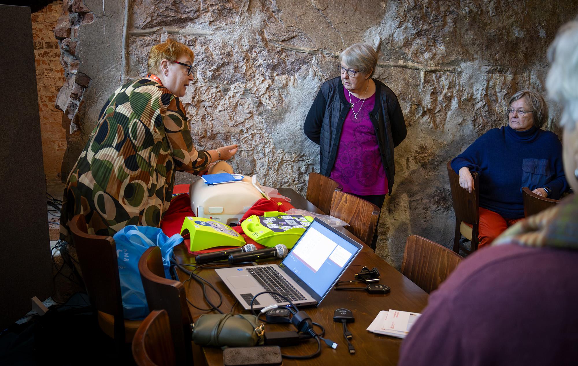 Mielenkiintoinen osuus oli myös tutustuminen defibrillaattorin toimintaan ja kuinka laitteen voi löytää 112-sovelluksen kautta. Tämä osuus koettiin hyvin hyödylliseksi ja se herätti paljon kysymyksiä. Tämän jälkeen kuuluikin kommentti: ”Nyt on huomattavasti helpompi käyttäytyä tilanteessa, jossa pitää elvyttää sydänkohtauksen saanutta defibrillaattorin avulla”.