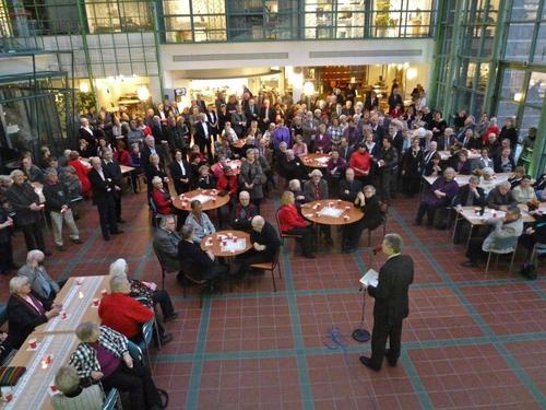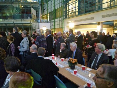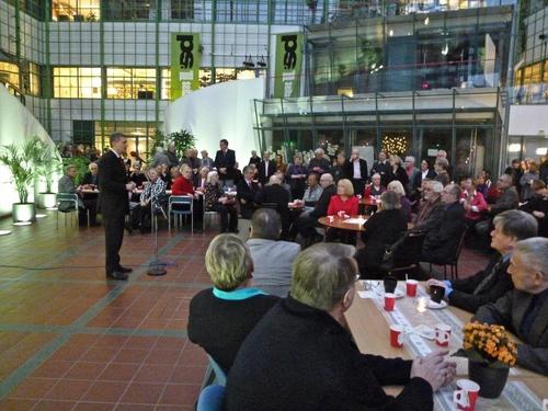 Lähes 350 eläkeläistä oli saapunut paikalle toteamaan miten toimitusjohtajamme Lauri Kivinen rikkoi pitkään jatkuneen perinteen että Ylen eläkeläiset ovat turhaa joukkoa. Kutsu lämmitti mieltämme ja koimme kuuluvamme vielä Yleen ja yhteen hiileen puhaltaminen sai uutta sisältöä. Kiitos Lauri!
