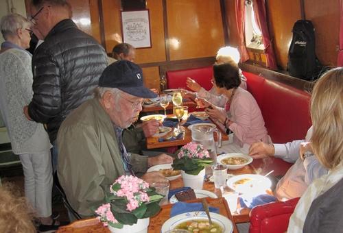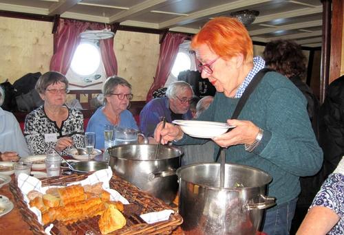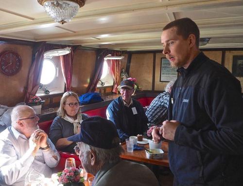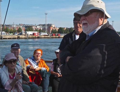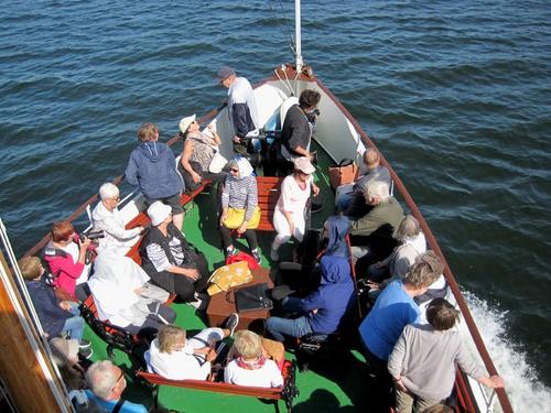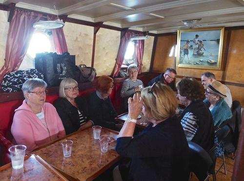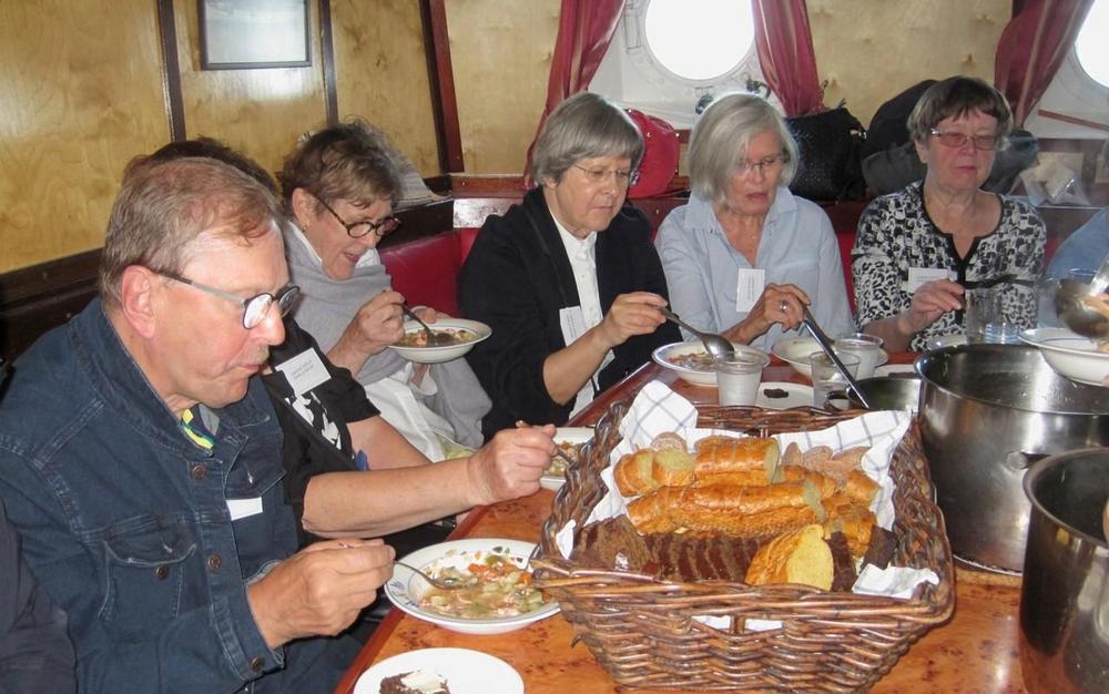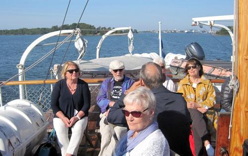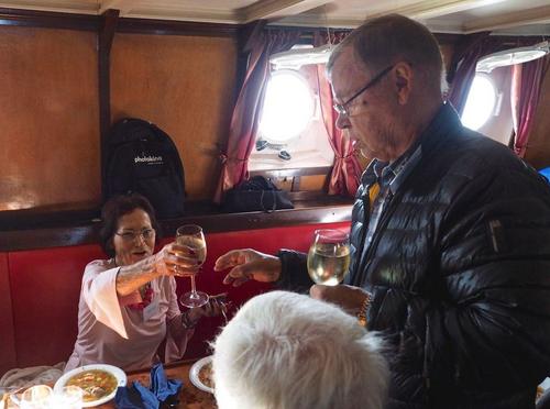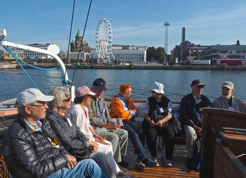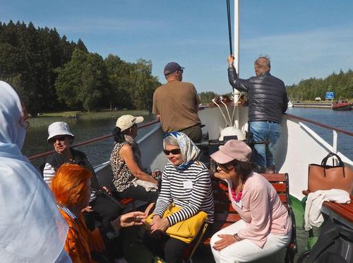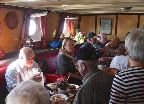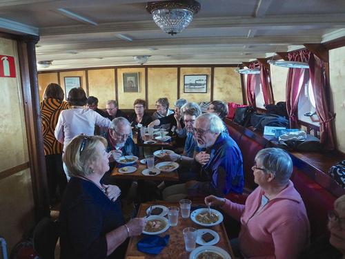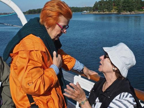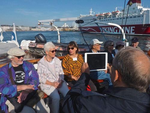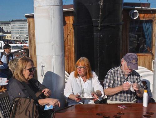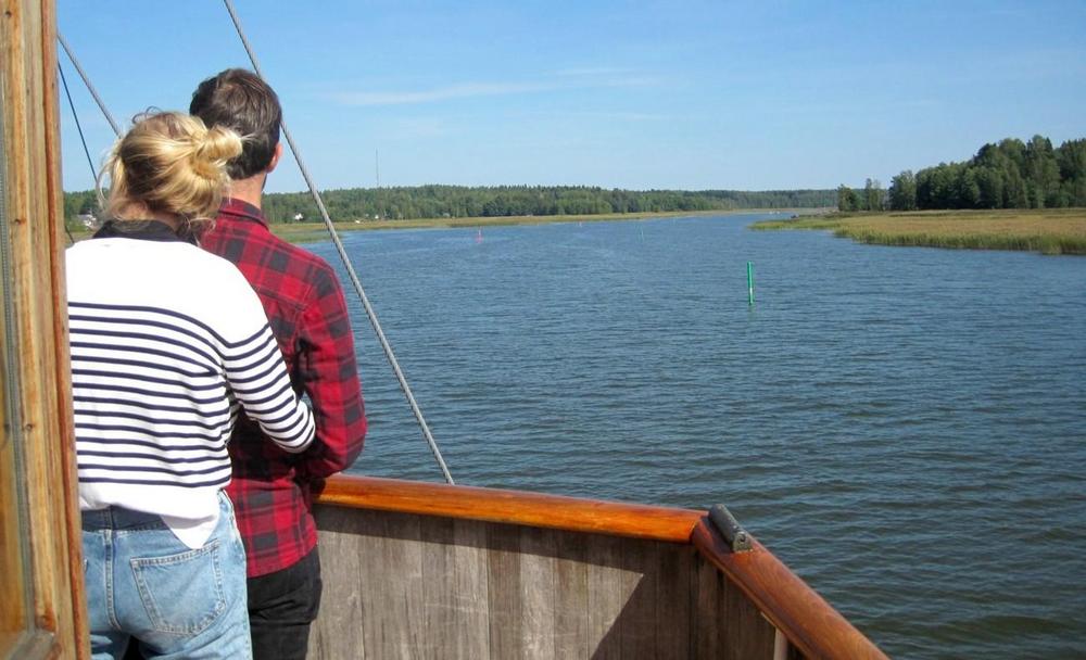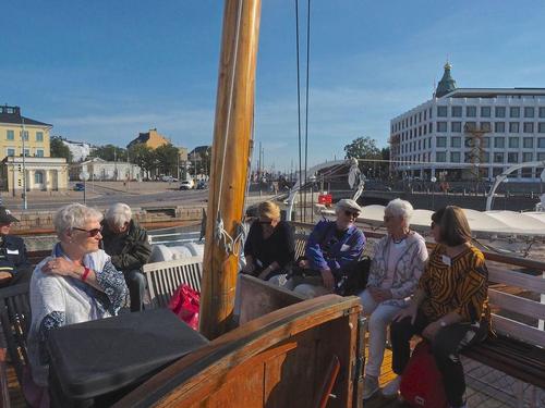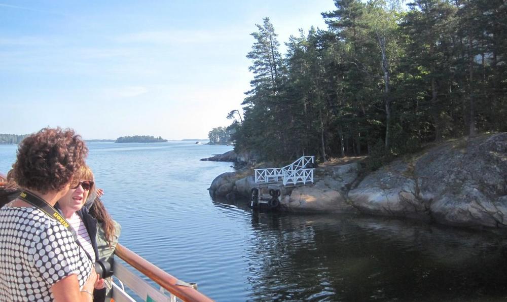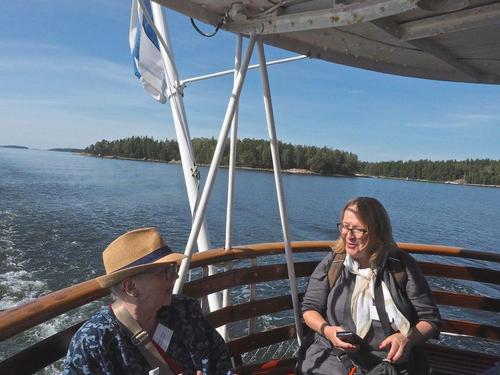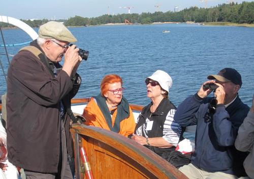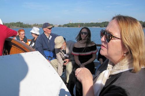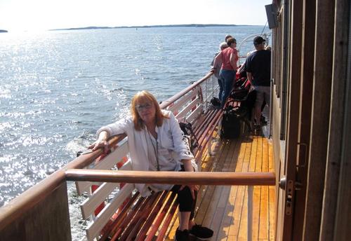Helsingin edusta hehkui auringinvalossa, kuohuviini kupli yläkannella ja saaristo oli tyrmäävän kaunis. Maittavaa lohikeittoa ja kahvin kanssa runebergintorttua tarjoiltiin ahtaassa takasalongissa, jossa oli tiivis tunnelma, kun istuttiin melkein sylikkäin.